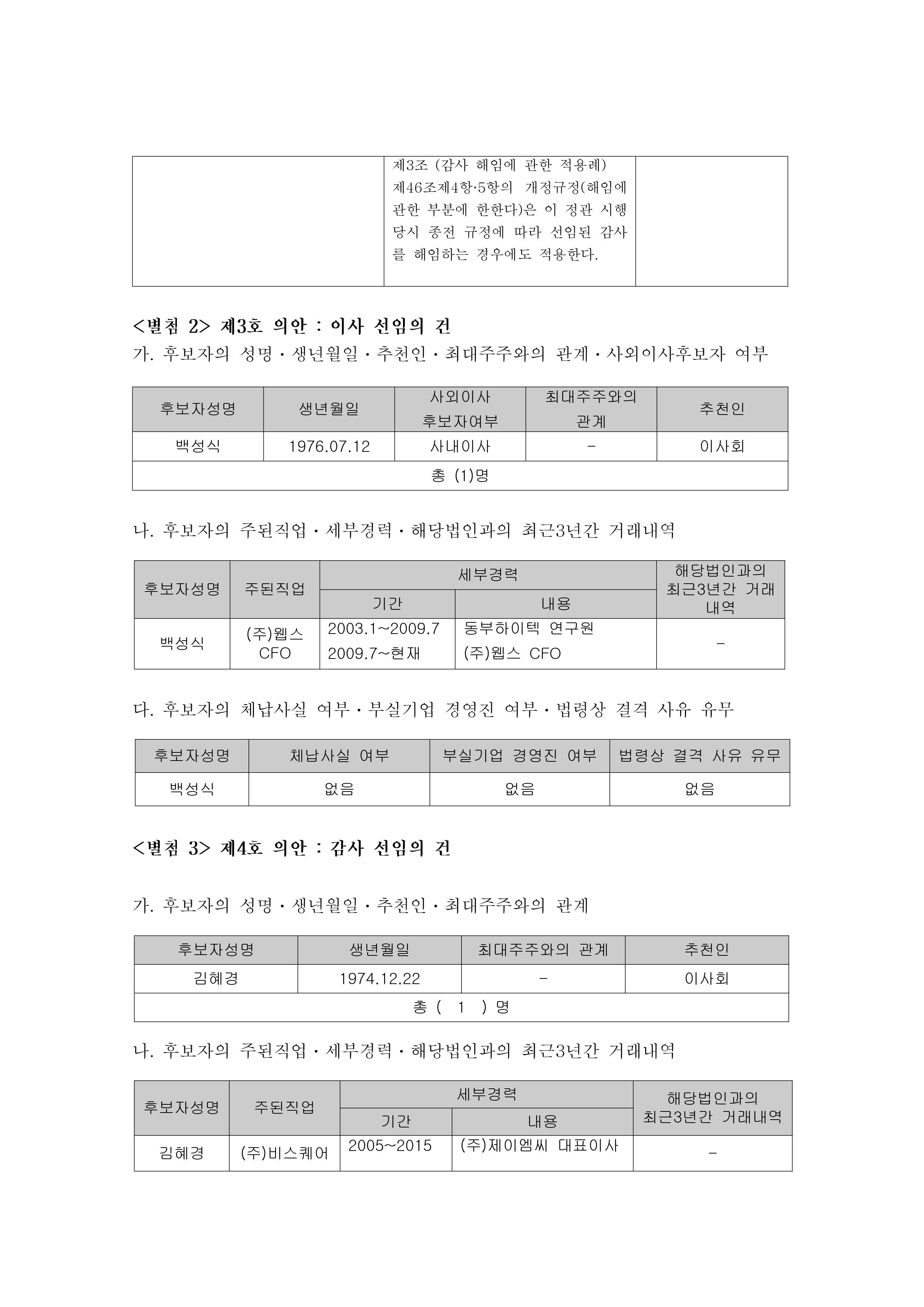 [투자 정보] 제 20기 정기주주총회 공고 2021.03.19 관련링크 이전글 제20기 정기주주총회 위임장 외부감사인 선임 공고 다음글 목록보기 본문 이전글 제20기 정기주주총회 위임장 외부감사인 선임 공고 다음글 목록보기